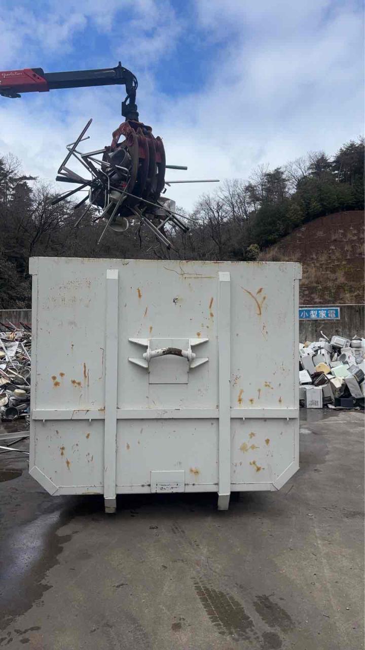 砕石場の鉄筋をを引き取り アムロール箱を降ろし て積み込みします